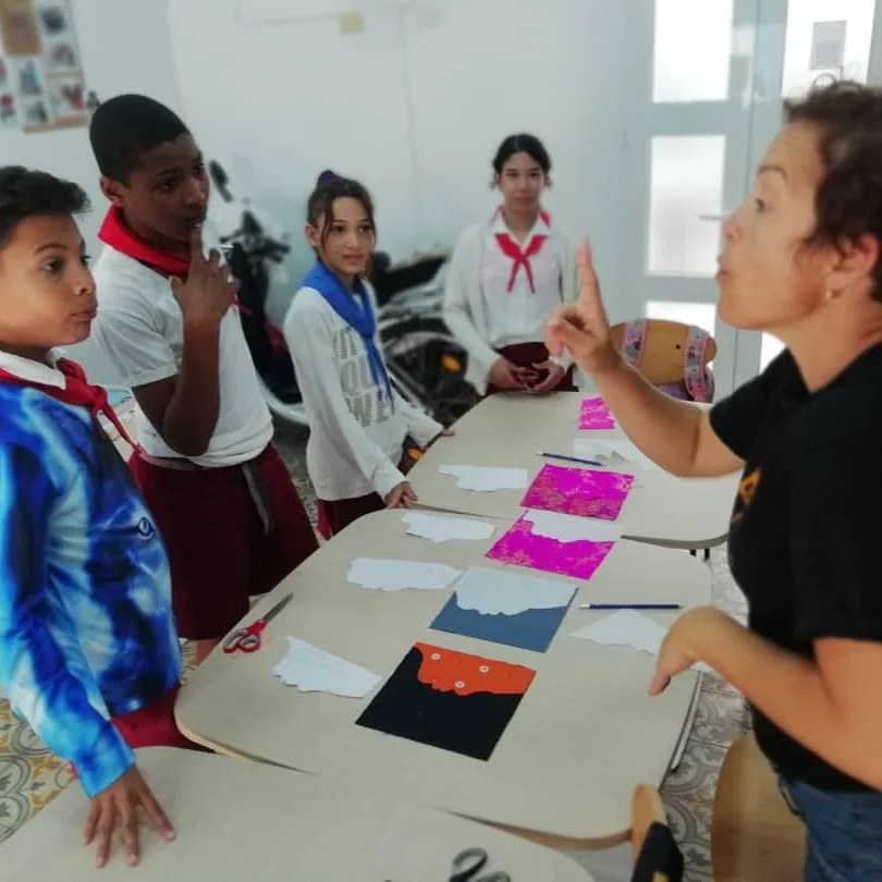 Esta jornada de trabajo culminó con un intercambio a modo de crítica colectiva en cada Taller. La ayuda de Marisleydi, nuestra Gestora Cultural e Instructora de Lengua de Señas, fue excepcional. Fue un encuentro de aprendizaje centrado en la búsqueda de Señas para términos técnicos de los talleres de arte.